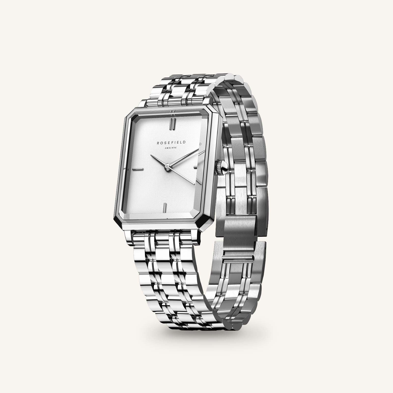 The Octagon XS is the perfect watch for a smaller wrist. The 24mm octagonal watch has a classic, yet modern feel with stunning design details such as 3D-facet polished glass and an elegant 5-link watch strap.